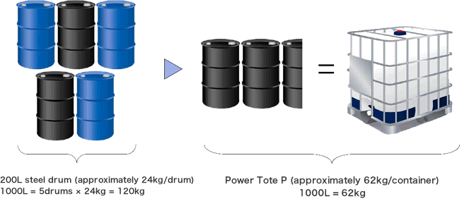 Power Tote P effective for space saving, highly efficient transportation, and filling efficiency improvement.